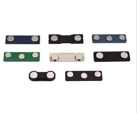 Permanent rare earth magnets are attracted to steel badge plates that are attached permanently to the back of your tags or badges. These deluxe magnetic fasteners feature a smooth strong surface, that is durable and comfortable to wear.